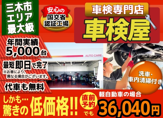 車検屋は、多くの三木・神戸市・加古川市・加東市・小野市・加古郡(稲美町・播磨町)エリアのお客様のご愛顧を頂き、 おかげさまで年間車検5,000台を突破!